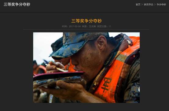 为深入贯彻落实习近平总书记在文艺工作座谈会上的重要讲话、《中共中央关于繁荣发展社会主义文艺的意见》精神,我院领导对文化建设高度重视,关心和支持院摄影协会创作优秀水利摄影作品。近期,院摄影协会艾光辉的摄影作品《争分夺秒》获江西省摄影家协会主办的2017“金像杯”摄影月赛1月份比赛的三等奖;院摄影协会张李荪的摄影作品《鄱阳湖模型试验基地》在第一届中国水利摄影展中从4万2千余件(7万5千余张)参展作品中脱颖而出最终入选获奖。