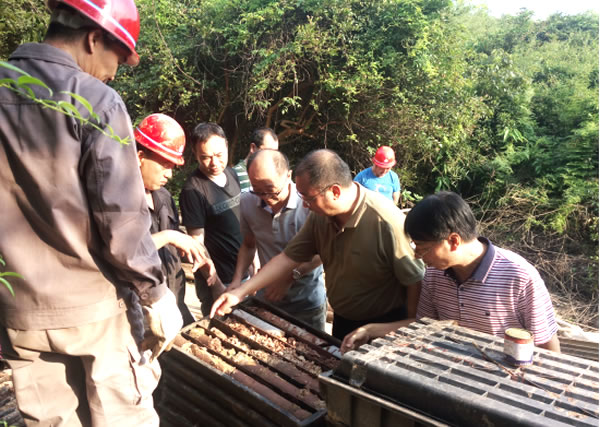 22日下午,冒着酷暑炎热,王百新副院长带领检查组一行到达宜春四方井工程勘察现场,首先听取了项目勘察负责人关于本次勘察情况的概要介绍,接着检查组人员对现场记录、岩心编录、钻孔任务书、安全台账等进行了检查。最后,王百新副院长对现场人员在炎热天气坚守岗位坚持勘察工作表示了敬意,对分院为确保工程勘察质量、提高工效、降低成本,引进新的勘察技术手段(植物胶钻进),提出了表扬;同时也指出,在酷暑季节应合理安排作息时间,保证饮食卫生安全,确保现场作业人员的身心健康。院副总工程师胡永林及项目经理同往现场查看。