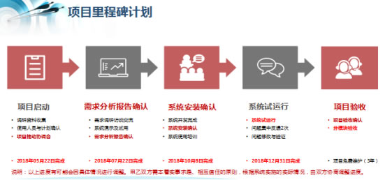我院生产经营信息化管理系统包含市场经营系统、设计项目管理系统、图文档管理系统、移动办公系统、CAD协同设计系统,2018年度启动市场经营系统、设计项目管理系统、图文档管理系统、移动办公系统模块建设。按照计划安排,2018年7月22日前完成需求分析确认,10月8日前正式交付安装,2018年12月31日前完成产品试运行,2019年1月生产经营信息化管理系统正式上线运行。