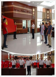 首先,大会在庄重的《国际歌》声中拉开帷幕,在张伯义同志的领誓下,新党员和全院全体党员干部面向党旗,举起右手,铿锵有力宣读入党誓词。通过重温入党誓词,所有党员干部再次接受了一次深刻的党性教育和灵魂洗礼。大会宣读了《江西省水利规划设计研究院关于表彰2017~2018年度优秀共产党员、优秀党务工作者和先进党组织的决定》,并为获奖者进行了颁奖。