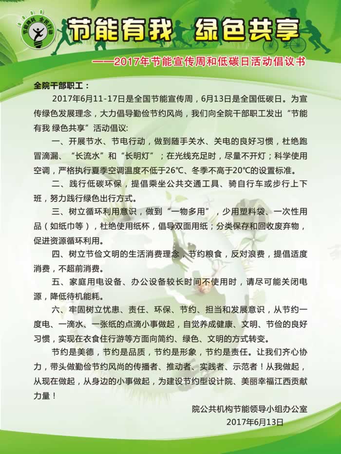 节能有我 绿色共享倡议书