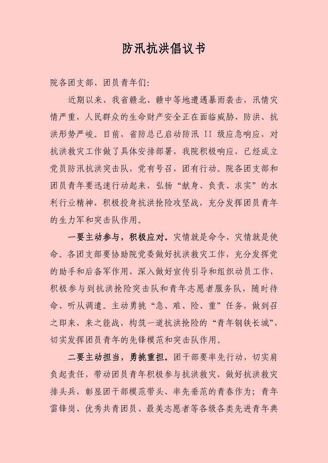 防汛抗洪倡议书