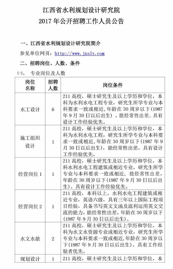 江西省水利规划设计研究院2017年公开招聘工作人员公告