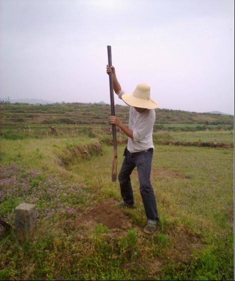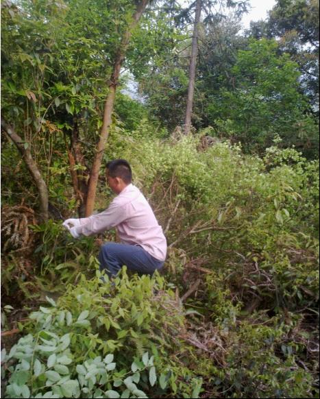 因为寒山的森林覆盖面积实在是太大,为了工作的顺利进行,我们不得不把一些标埋在山顶上。可是这些山都很陡,并且树很密,而且没有路,无法顺利的通往山顶。没办法,只有一路砍树上山了。于是我们带上民工,两个两个一组,你砍树,我抗标,有时候累了就我抗标,你砍树,等到了山顶,大家的衣服都湿透了。可是看着自己开好的路能为以后的工作提供便利,大家心里还是美滋滋的。在山顶上眺望整个寒山,风景优美,空气清晰,我们都有着说不出的痛快,能为这里的老百姓做一些力所能及的事,我们也感到骄傲和自豪。