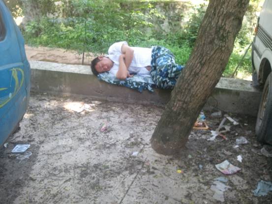 中午的太阳很大,像今天算幸运的,找到颗大树下休息,还算安静。想起这些天,桥底下午休过、村庄房边午休过、菜市场大棚里也午休过。