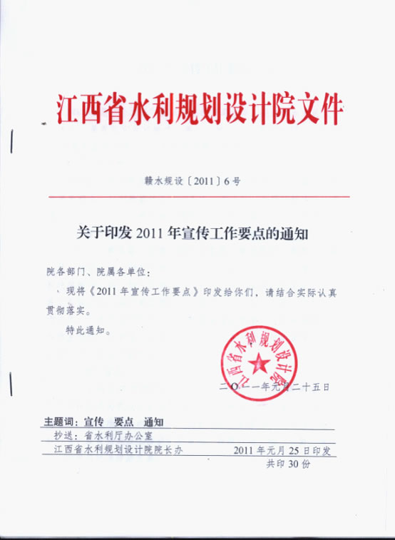 2011年是“十二五”发展规划的开局之年,是江西水利的又一个春天,是我院实现可持续发展的关键一年。因此规划、组织好2011年的宣传报道工作,具有十分重要的意义。