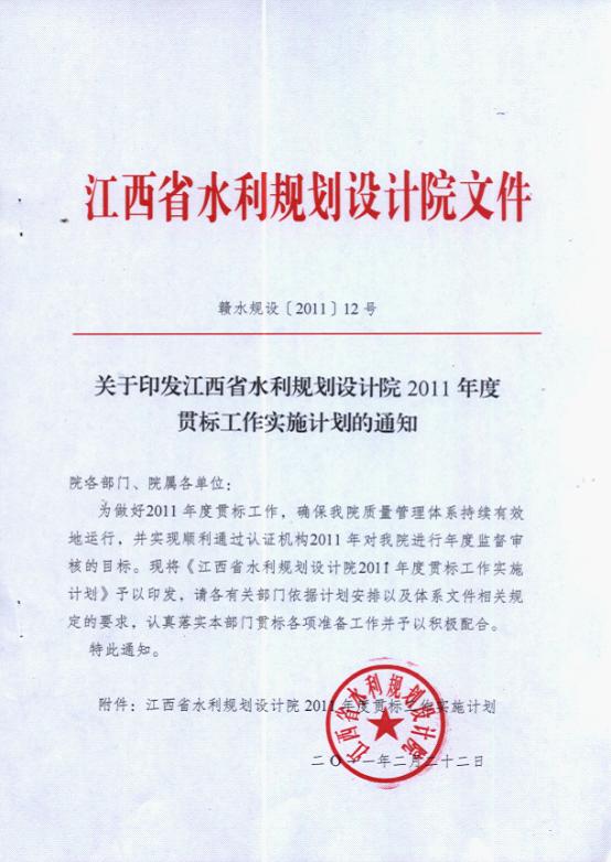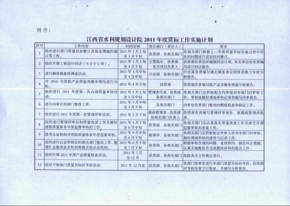 关于印发68365365.com2011年度贯标工作实施计划的通知
