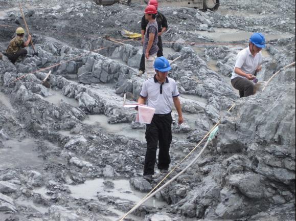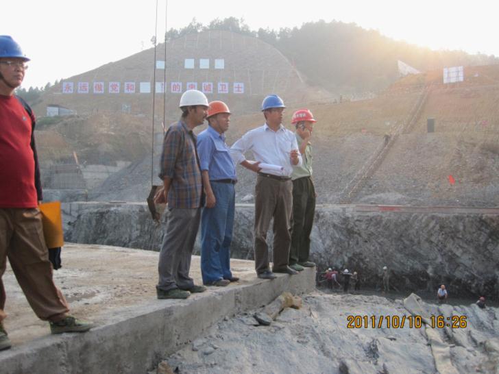 枢纽工程开工后,以王义兴同志为组长的枢纽地质组在工程开挖、地质预报、边坡加固、建基面验收和工程地质缺陷处理等各方面起到了积极作用,为枢纽工程建设提供了有力的技术支撑,受到业主、监理和施工单位的好评。如:2010年4、5月份雨季,左岸坝肩边坡发生滑坡,王义兴同志多次到现场观察和分析,认为施工边坡陡于设计边坡,需作进一步削坡。经监理复测,施工单位二次削坡,最终左岸坝肩边坡达到了稳定状态。2011年初,右岸坝肩边坡锚索加固因施工单位水平先导孔进度迟缓,导致边坡加固进度严重滞后。在指挥部召开的专题会上,王义兴同志提出把水平先导孔改为铅直孔,后使施工难度大大降低,大幅度缩短了坝肩边坡锚索加固进度。
