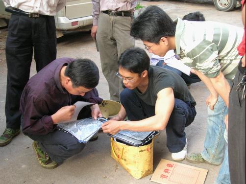 03年夏天的持续高温给我们野外测量带来了巨大的考验,太阳高挂天地间,将大地变成一个巨大的蒸笼,在炽热的太阳底下连续工作十几个小时,汗水就像淋浴一样不断淌,流进眼里、嘴里,湿透了衣衫。船作为流动工作生活场所,船舱也变成为蒸笼,人在船舱里呆上几分钟就会感到头晕胸闷。