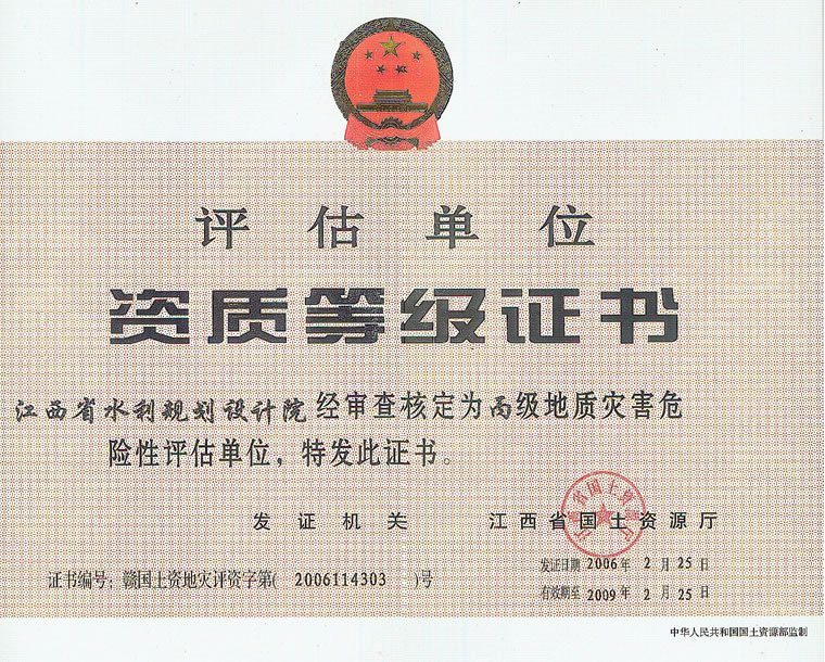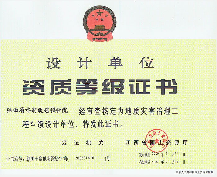 地质灾害治理工程设计单位资质等级证书(乙级)