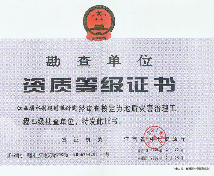 地质灾害治理工程勘察单位资质等级证书(乙级)